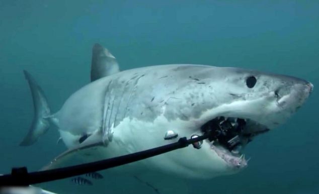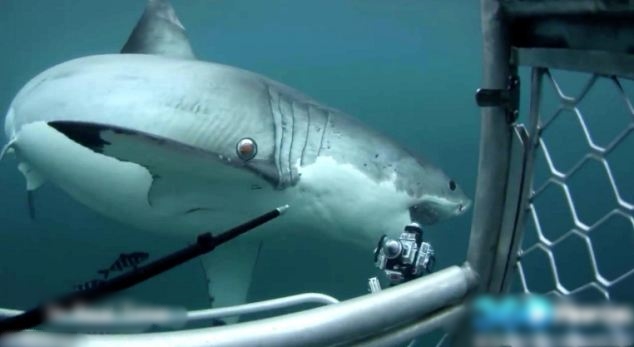 新西兰大白鲨海底出击抢走摄影师昂贵相机
