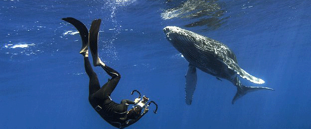 海洋科学家通过无器械自由潜水方式与座头鲸和抹香鲸近距离接触