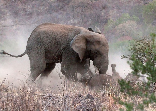 (神秘的地球报道)南非摄影师科克(Louis Kok)与太太,近日在非洲一个公园内,拍摄到一只正值发情期的巨型雄象,残暴地活活踩死一只犀牛妈妈的可怕画面。