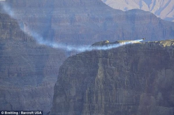 尽管遇到挫折,罗希并没有放弃这一飞跃计划。次日,罗希在背上绑上了喷气翅膀,直升飞机将他带往2000多米的高空以后,他纵身跳出机舱,并瞬间腾飞到了比峡谷最高处还高约70米的高空,用8分钟完成了长达8千米的有效航程。