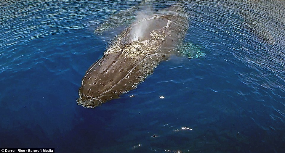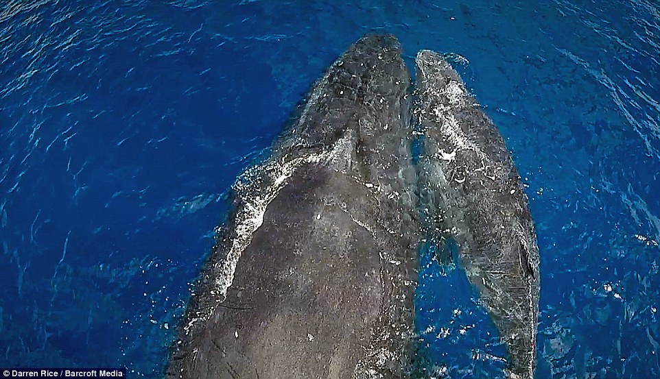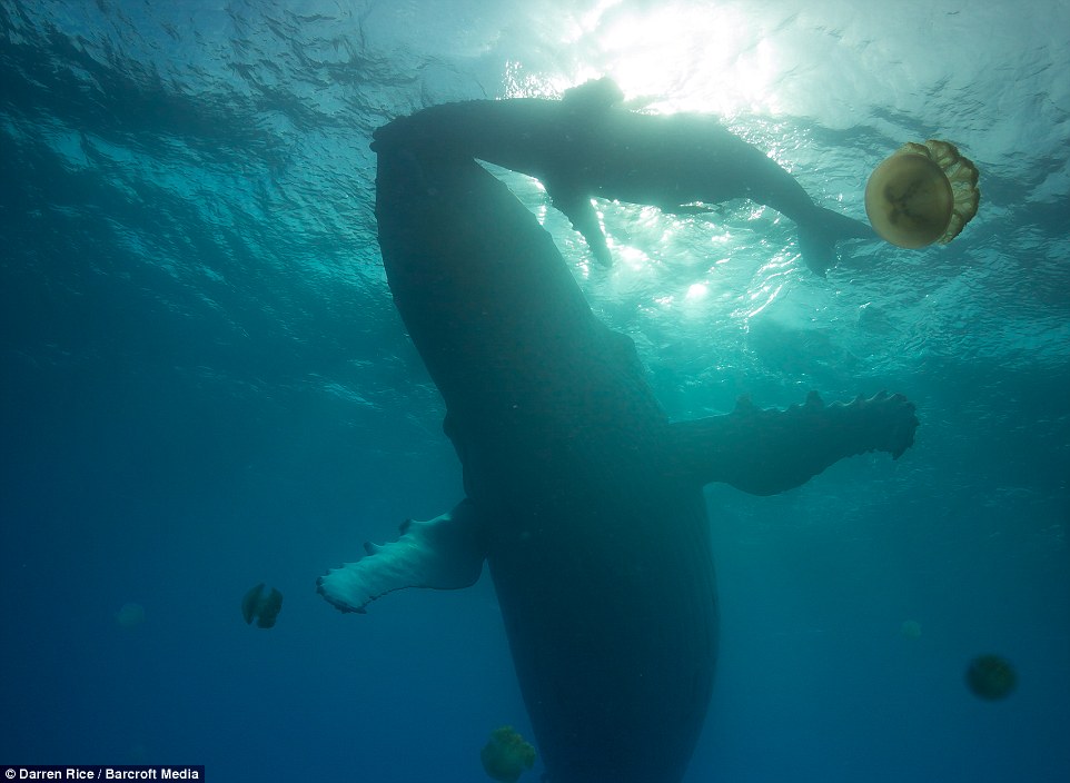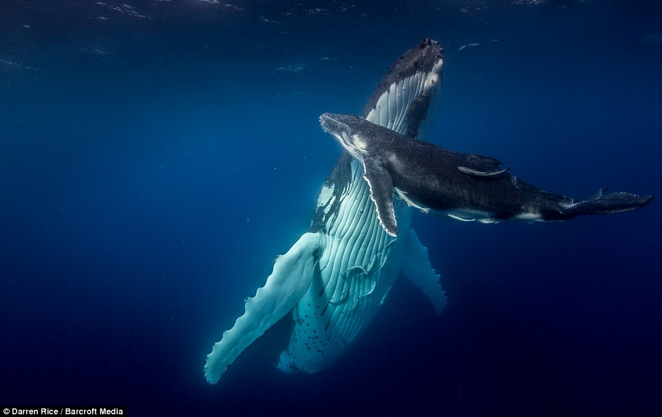 Darren Rice是在妻子Nina开的船上运用空中无人飞机拍摄到座头鲸的美丽画面,从天上俯瞰到水下欣赏它们姿态的画面都有,其中鲸妈妈带着鲸宝宝在水中几乎是黏在一起行动,共同前进下潜、浮出水面等温馨画面,更是让人看出座头鲸亲子间的关系是无比紧密。