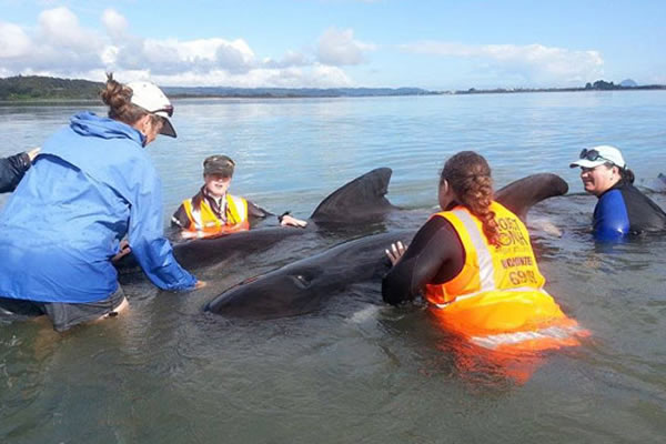 这批领航鲸在普兰蒂湾(Bay of Plenty)的奥希瓦港搁浅,包括义工及原住民毛利族人,联手参与这次大型的拯救任务。新西兰保育部表示,有25条鲸鱼早已死亡,另有11条必须进行安乐死。不过救援人员仍努力抢救,成功让21条鲸鱼重新在海上浮起,它们并已游出港口往更深的水域。