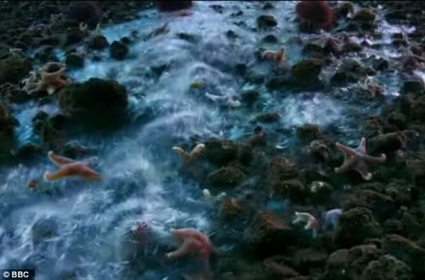 随着冰的向外扩张,与之相遇的海星惨遭冻结