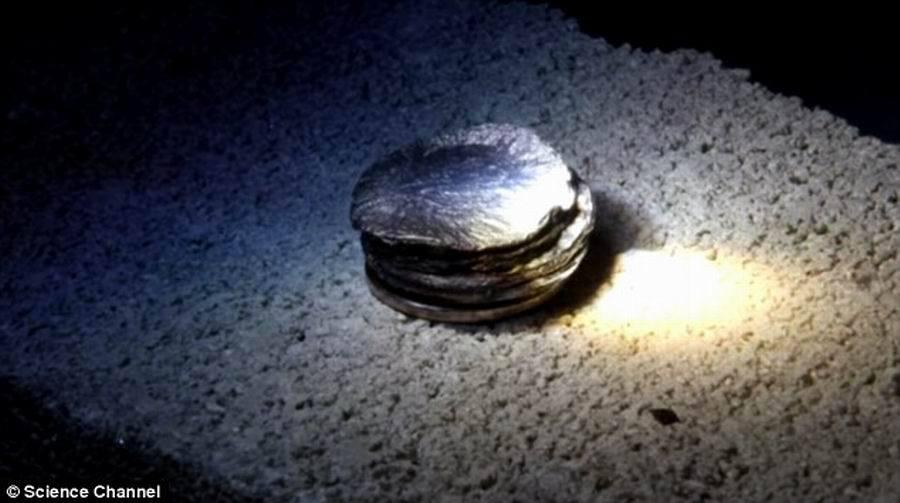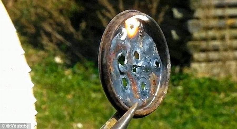 他们将铝金属包装的一包爆米花放置在菲涅耳透镜之下,射线很快灼烧一个洞,穿透铝金属包装,露出其中的爆米花。