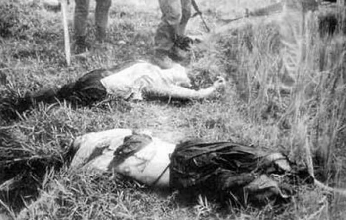 韩国部队在越战屠杀平民,地上躺着两名年轻女子的尸体。