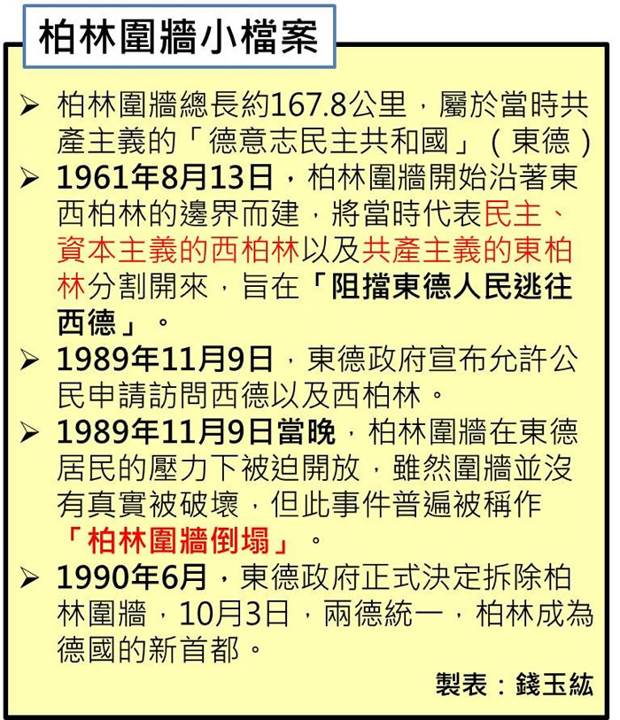 相关报道:柏林围墙倒塌原因…竟是东德官员「误解」指令 现场记者大傻眼