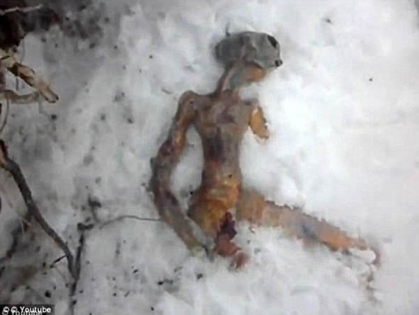 西伯利亚伊尔库次克出现的一具怪异尸体,据说由两名过路人发现。伊尔库次克素以经常发现外星人和UFO著称