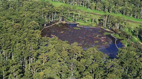 据称,这个巨坑出现在巴顿鲁日(Baton Rouge)以南约80公里的厄桑普逊教区(Assumption Parish)一片密林里,里面有很多非常高大的柏树。从空中俯拍的照片上看,巨坑的上面还露出一部分树木的树顶。当地政府对那里的100至150户居民发出撤离令,但多数居民愿意继续待在那里。如果出现非常危急的情况,当地政府将把撤离令升级为强迫性撤离令。