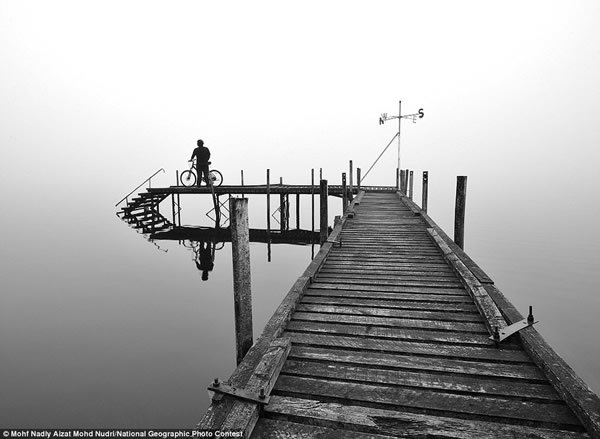 摄影师莫夫-纳德利-爱扎特-莫德-努得里独自沿着新西兰西海岸骑车旅行时,在布纳尔湖边偶然发现了这个码头,浓雾将天空、湖水和码头融为一体。