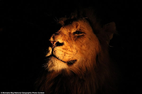 摄影师米切尔拉-梅在克鲁格国家公园中探险时偶遇这头雄狮。
