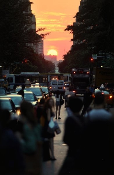 曼哈顿14街以北的街道呈棋盘式,「曼哈顿巨石阵」是落日从东西向两侧高楼中间缓缓降下,余晖洒满东西线街道,全部过程不会被建筑物遮住。因为有如英国巨石阵(Stonehenge,在夏至日出和冬至日落出现)而得名。(ETtoday 新闻云)