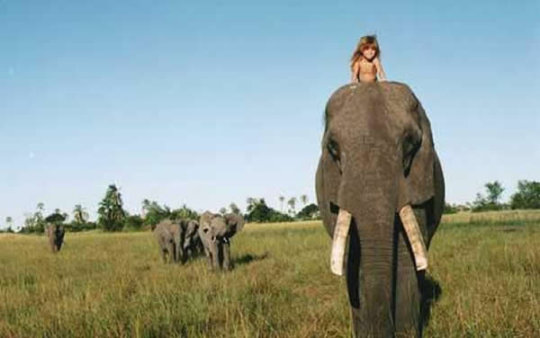英国作家罗德亚德吉普林的小说《丛林之书》中家喻户晓的“森林之子”莫格利也有现实世界中的真人版:一个在非洲出生的女孩,在她人生的头10年里,一直随父母生活在非洲的大草原和丛林中,与各种野生动物朝夕相处,大象和猎豹成为了她最亲密的朋友。