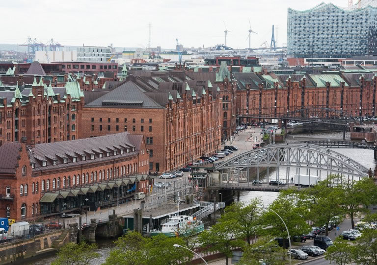 至于德国汉堡的仓库城,占地26公顷,是一栋由红砖建造的哥德式建筑,亦是全球最大的桩基础仓库区,建于1883年到1927年,近年成为旅游热点。