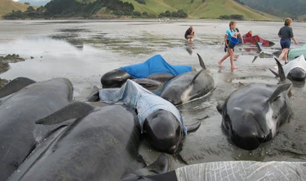 根据《镜报》报导,领航鲸搁浅的地点在新西兰黄金湾(Golden Bay),该地之前也有鲸鱼搁浅事件,但这次竟高达200头;新西兰环保部(DOC)人员表示,这是一项非常困难且兼具危险的工作,鲸鱼重返大海必须仰赖涨潮,若今晚无法顺利将200头的鲸鱼送回大海,必须等下一次的涨潮,也就是24小时之后才能再进行。