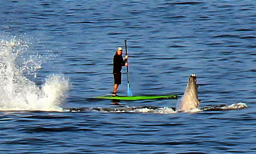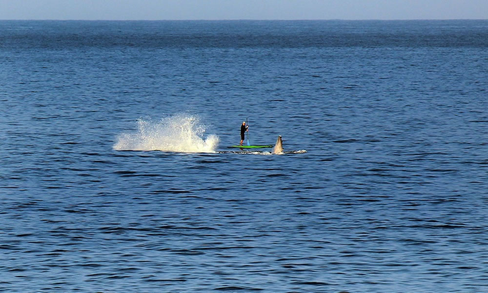 拍下这一幕的是正和妻子海边度假的65岁男子大卫・沃伦(David Warren)。当日,他们正享用早餐,大卫偶然间注意到风平浪静的海面上有一位惬意的划桨者,他身边的巨鲸若隐若现,于是拿出相机拍下了这一幕。沃伦称:“一眼看上去就像那人正骑在鲸背上,太难以置信了,但他似乎一点都不担心。”