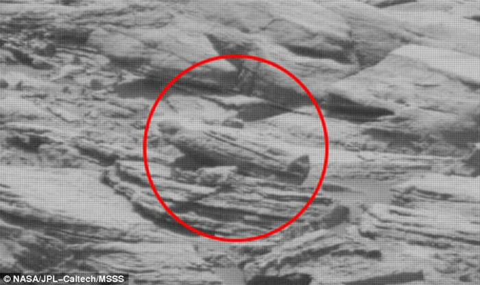 Mister Enigma表示,照片中有一具似是石棺的物体,搁在火星表面的乱石当中,看起来与埃及木乃伊石棺非常相似。此外,他又指“好奇号”在同一区域拍摄的照片中,可以看到两张雕刻在悬崖的脸孔,凝望着石棺所在的位置。Mister Enigma说得煞有介事,信不信则由你了。